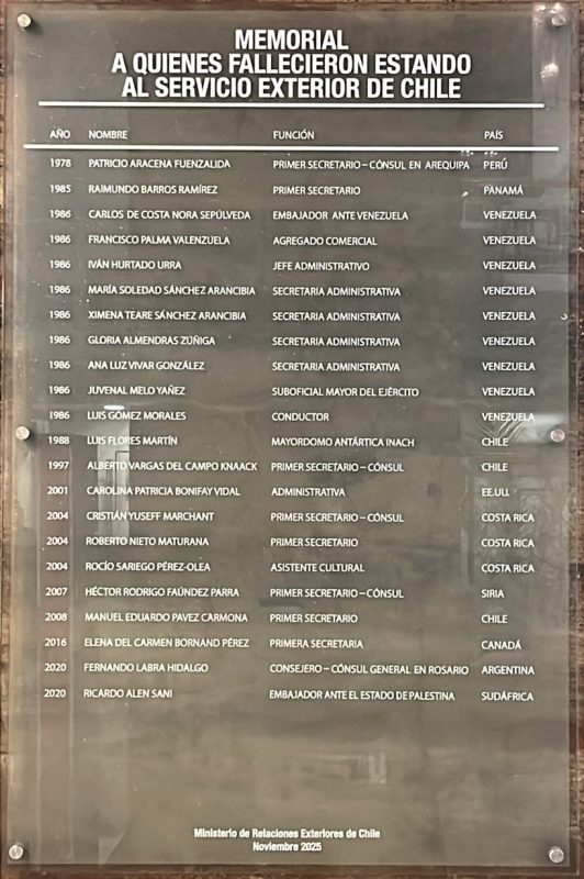 Hoy, en un significativo acto, la Asociación de Diplomáticas y Diplomáticos de Carrera (ADICA) y la Mesa Gremial del MINREL actualizaron el Muro “In Memoriam” de la Cancillería.